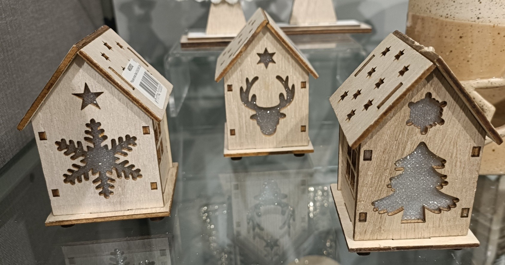 Pikkuiset joulutalot pöydälle tai ikkunalle.
