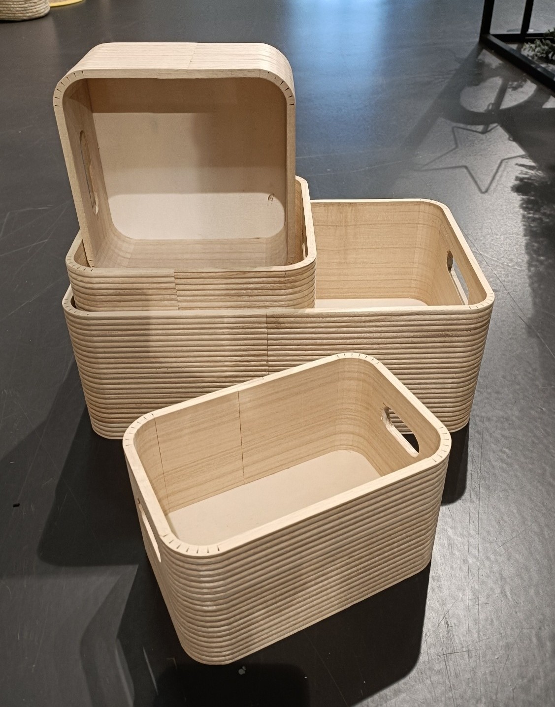 Neljän puulaatikon setti, mäntyä